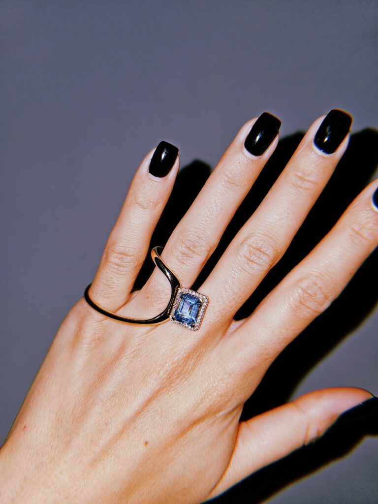 Neem de Cosmic Ring, bijvoorbeeld – een ontwerp geïnspireerd op de orde en chaos van het universum. Het is geen letterlijk sterrenbeeld aan je hand, maar een subtiele verwijzing naar beweging, spanning en evenwicht. Of de Double Velvet Ring, Bergmans moderne interpretatie van de historische Toi et Moi-ring, waarin twee lichtblauwe edelstenen elkaar ontmoeten in roségoud. Geen Napoleontisch romantisch gebaar, maar een eigentijdse blik op verbinding – tussen geliefden, tussen mensen, of gewoon tussen twee kleuren die elkaar versterken.