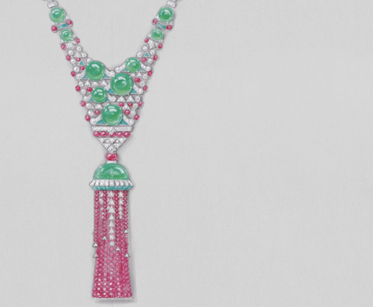 Die aanpak vraagt om precisie. Sommige ontwerpen bestaan uit tientallen afzonderlijke stenen die exact op maat zijn geslepen en geplaatst. Sluitingen zijn daarbij geen bijzaak. In één van de kettingen schuift de sluiting over beide strengen, zodat het sieraad verstelbaar blijft zonder dat de constructie uit balans raakt. Dat soort oplossingen is kenmerkend voor de manier waarop Cartier al langer met transformeerbare sieraden werkt.