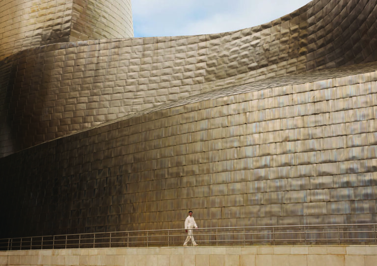 Het museum in Bilbao opende 29 jaar terug en groeide uit tot een internationaal symbool van hedendaagse architectuur. Het gebouw is ontworpen door de Amerikaanse architect Frank Gehry, die onlangs overleed. Zijn laatste ontwerp, het Guggenheim in het emiraat Abu Dhabi, wordt later dit jaar geopend. De gevel van het museum in Bilbao is bekleed met duizenden dunne titanium platen, die afhankelijk van het licht van kleur veranderen.