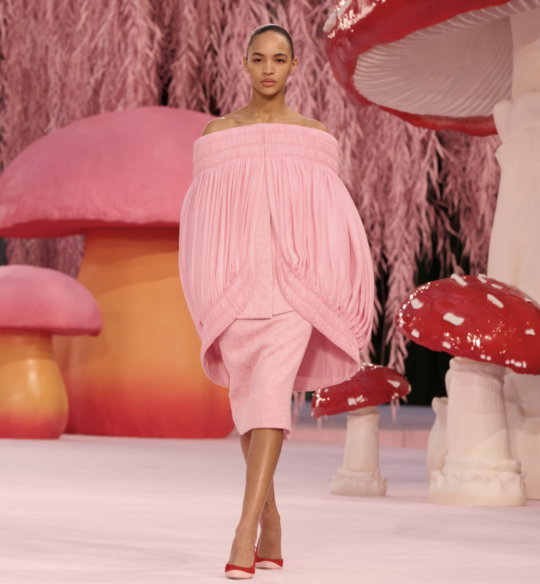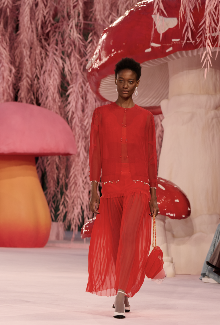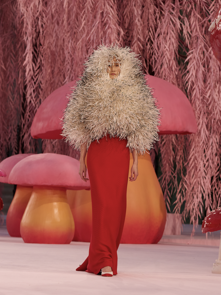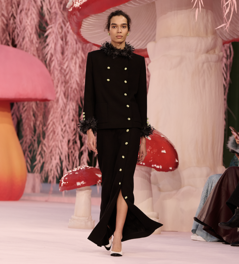 Voor zijn couturedebuut kiest het modehuis voor een opvallende presentatie. Vooraf gedeelde beelden laten een speelse setting zien met grote paddenstoelen en een lichtgekleurde catwalk, afgewisseld met scènes uit de ateliers. Daarmee legt Chanel opnieuw de nadruk op de combinatie van ambacht en verbeelding.